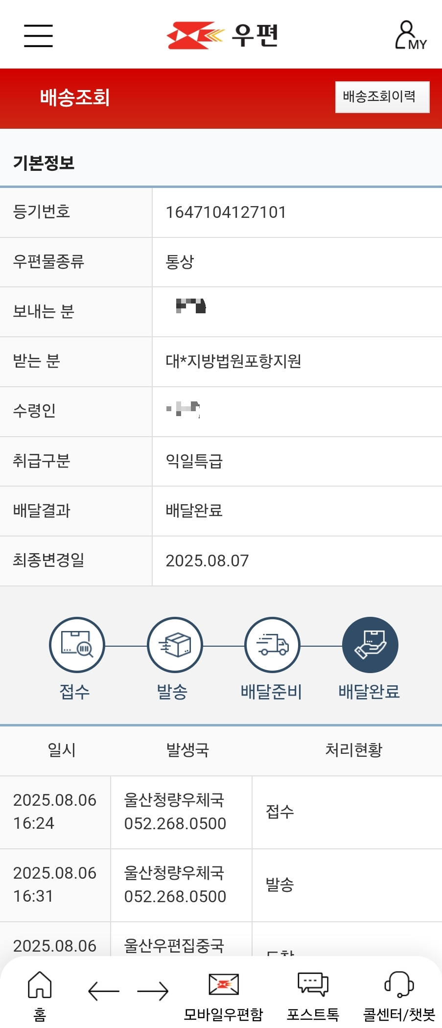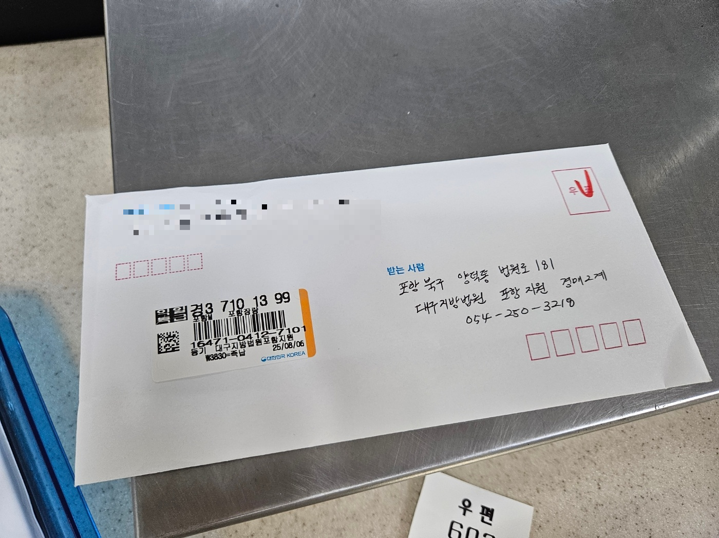 기름쟁이가 보낸 법원보관금 계좌이체 신청서는 하루 만에 대구지방법원 포항지원에 도착을 하였습니다.