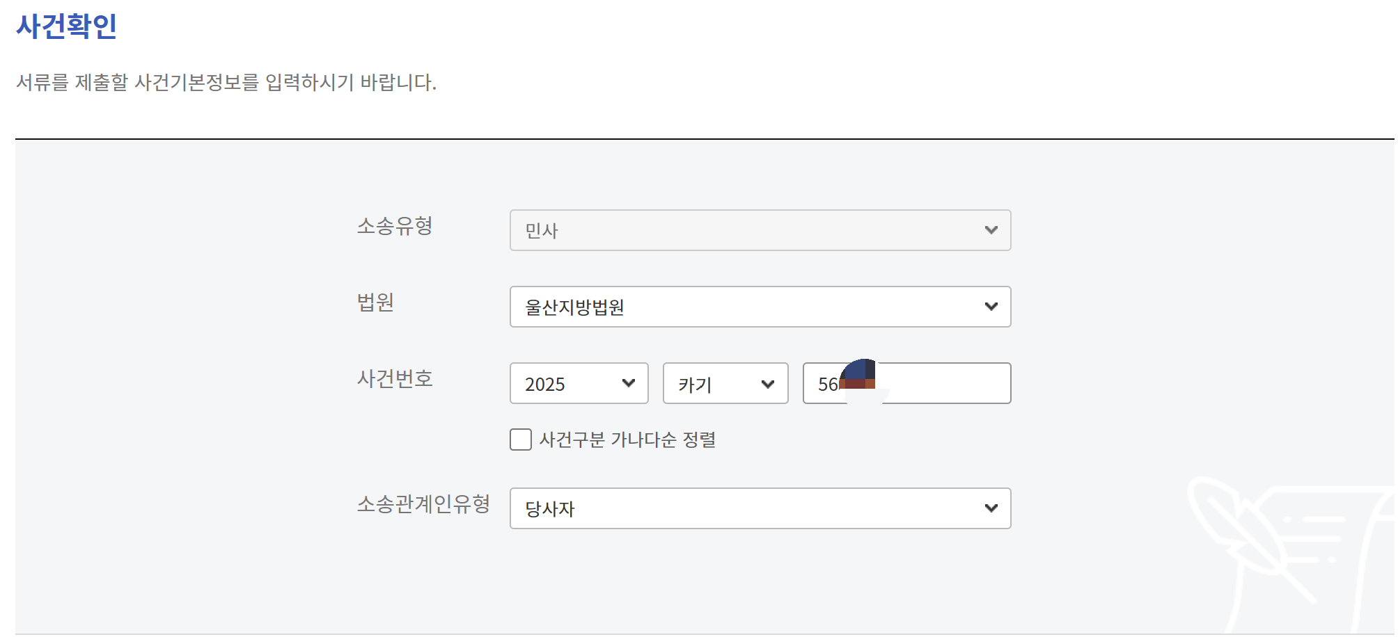 기타 서류를 제출할 사건번호와 정보를 확인합니다.