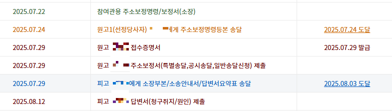 보정명령에 따라 피고의 주민등록초본을 제출하였고 소장 송달이 완료되었습니다.