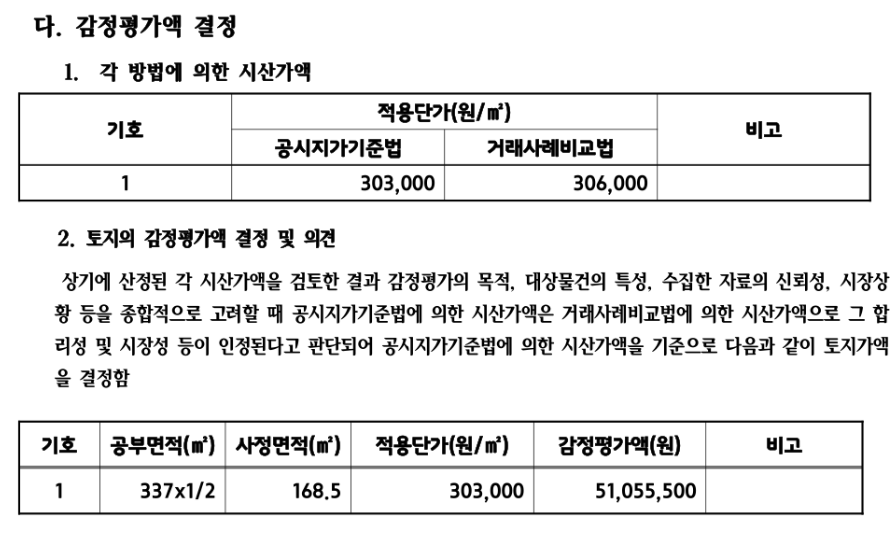 그럼 감정평가 결과를 확인해 보겠습니다.