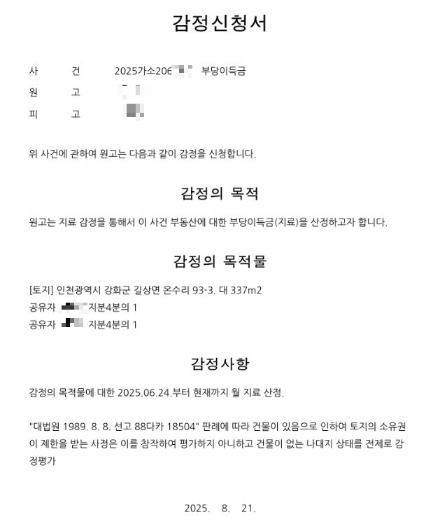 [부당이득금 청구의 소]감정 신청을 통한 감정평가 과정 (1) 2025.11.24 [부당이득금 청구의 소]감정 신청을 통한 감정평가 과정 (0) 2025.11.24 [2024-10610-001]이송 신청 사건 결과(Feat. 부당이득금 관할 법원) (0) 2025.11.01 [2024-10610-001]전자소송 보정명령 주소보정서 제출하기 (0) 2025.08.20 집행에 관한 이의 신청 특별 항고 결과 (1) 2025.07.24