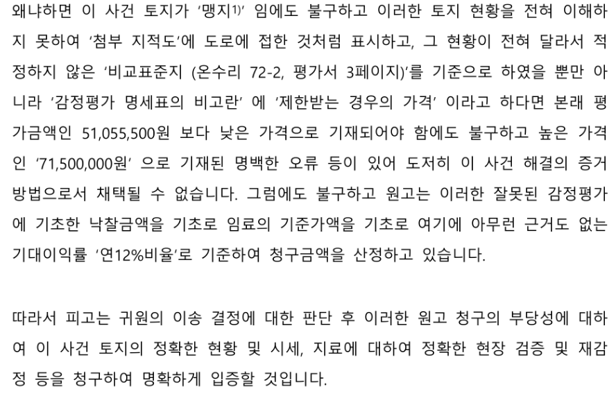이러한 근거로 피고는 답변서를 통해 재감정을 요청하였습니다.